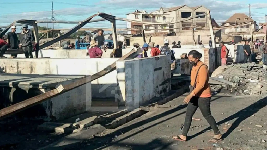 Antananarivo, 23 Juillet, 17h30 – Le Tsena Sabotsy ne restera pas longtemps en cendres. A peine sortis de leur torpeur suite à la destruction par les feux de leur lieu de travail dans la nuit du lundi à mardi, les commerçants retroussent leurs manches pour reconstruire. Depuis ce mercredi matin, des stands en bois ont commencé à sortir de terre au coeur du marché. Les autorités locales ont décidé d’autoriser les marchands à se réinstaller, confie Vyvato Rakotovao, gouverneur de Vakinankaratra.