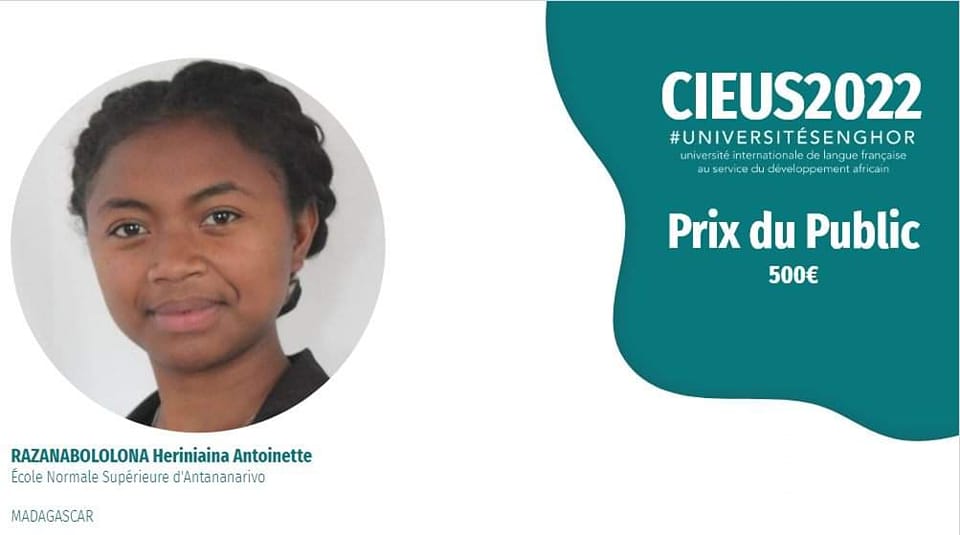 Antananarivo, 8 Novembre, 6h00 – Les bonnes nouvelles s’enchaînent. Une autre Malgache remporte un prix dans un concours international. Il s’agit de Heriniaina Antoinette Razanabololona, étudiante de l’Ecole normale supérieure d’Antananarivo, qui a gagné le prix du public lors de la finale du Concours international d’éloquence de l’Université Senghor (CIEUS). Ayant récolté le maximum de votes en ligne, la Malgache a empoché un chèque de 500 euros. L’évènement s’est déroulé en ligne le 4 Novembre.