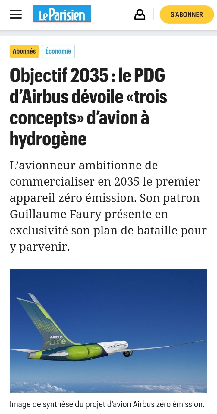 Antananarivo, 21 Septembre, 20h18 – Des appareils zéro émission en service dans 15 ans. Trois concepts d’avions sont à l’étude chez Airbus avec pour objectif d’être le premier avionneur à commercialiser des appareils neutres en carbone.
