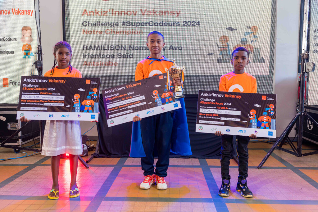 Antananarivo, 3 septembre, 9h55 – Une nouvelle génération de talents numériques qui émerge. Le Challenge national #Supercodeurs d’Ankiz’Innov Vakansy 2024 a couronné ce lundi 2 septembre Iriantsoa Saïd Ramilison, comme grand gagnant. Lors de la finale, qui s’est déroulée au sein de l’Orange Digital Center Madagascar à Soarano, le jeune prodige d’Antsirabe s’est distingué parmi les meilleurs talents numériques du pays. Il a ainsi remporté une bourse d’études, un kit scolaire et la coupe tant convoitée. La récompense lui a été remise par Benja Arson, président d’Orange Solidarité Madagascar.