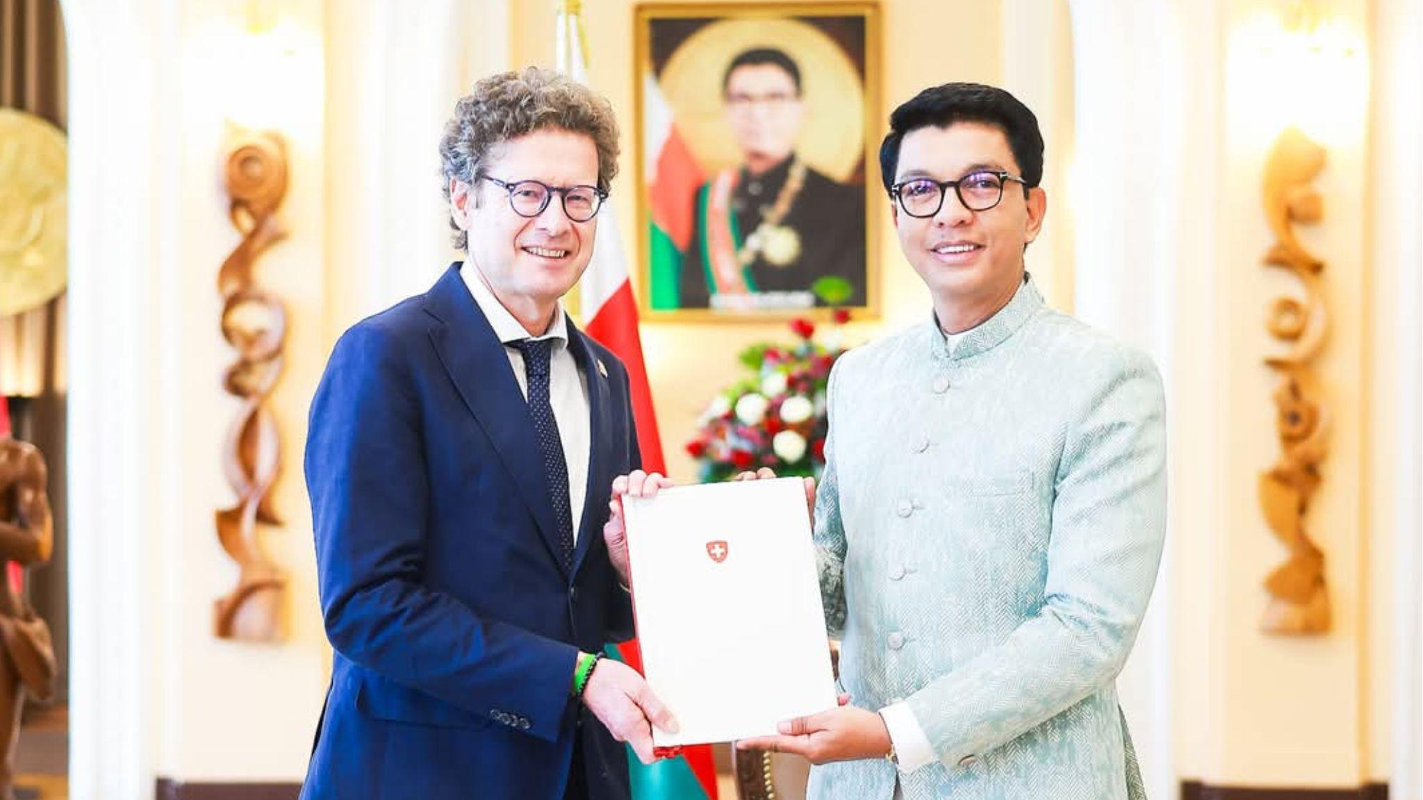 Antananarivo, 6 Février, 9h15 – Le successeur de Rolf Stalder est là. Stefano Toscano, le nouvel ambassadeur de Suisse à Madagascar a présenté ce mercredi ses lettres de créance auprès du président de la République de Madagascar Andry Rajoelina. Durant la cérémonie, les deux personnalités ont discuté des projets de coopération pour relancer les relations entre les deux pays, rapporte la présidence de la République. Plusieurs domaines ont été évoqués tels que la sécurité, la protection de l’environnement et la réponse face au changement climatique.