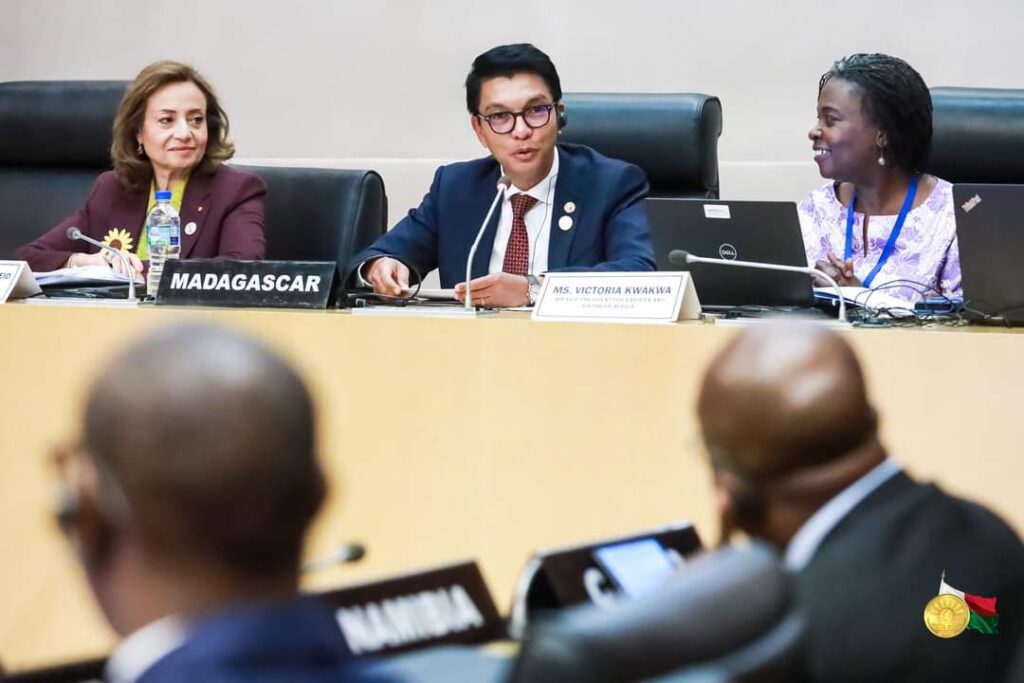 ⭕Pour le Chef d’Etat malgache, l’eau et le soleil constituent des alternatives moins chères en matière d’énergie. « Il faut réduire la dépendance aux énergies fossiles et favoriser les autres sources d’énergies qui sont moins chères telles que les barrages hydroélectriques « , souligne-t-il durant la table ronde des chefs d’Etat sur l’accès universel à l’énergie, organisée en marge du Sommet de l’Union africaine qui a débuté samedi et qui devrait se terminer ce dimanche.