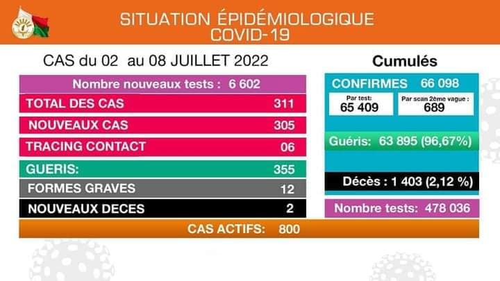 EPIDEMIE – Deux nouveaux décès dus à la Covid-19 et 311 nouveaux cas confirmés positifs au coronavirus selon le bilan épidémiologique du 2 au 8 Juillet