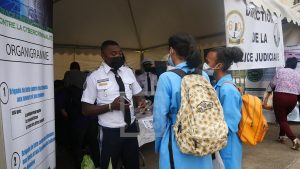 ⭕« L’événement m’intéresse particulièrement parce que je souhaite faire carrière dans la police nationale », confie Laza, visiteur de l’exposition. « Ici, j’ai pu obtenir les renseignements nécessaires pour postuler aux prochains concours » ajoute-t-il. Trois jeunes lycéennes, elles, disent désormais savoir « que l’on peut porter plainte contre les personnes qui nous draguent sur facebook avec des faux profils ». Elles venaient d’écouter attentivement les explications d’un des responsables dans un stand du département qui lutte contre la cybercriminalité.