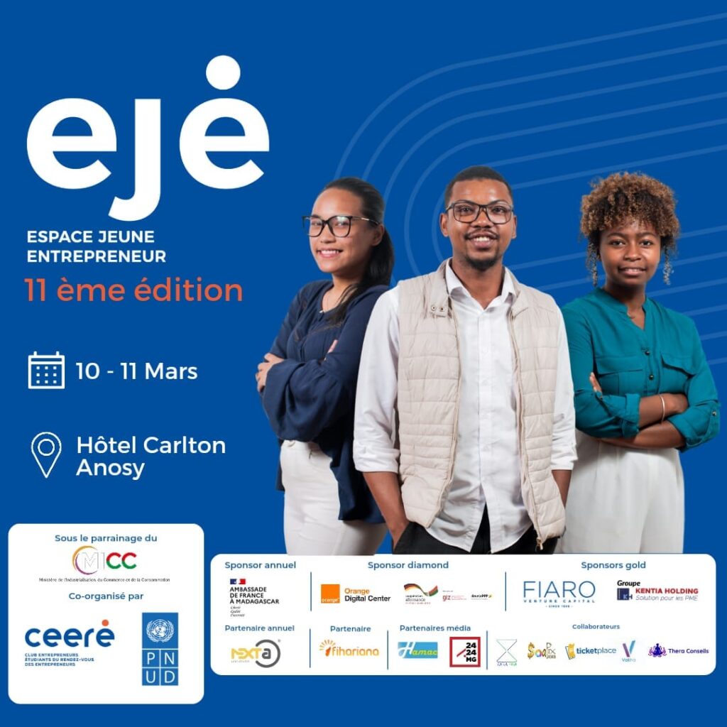 Antananarivo, 10 Mars, 7h15 – Vous êtes jeune et vous souhaitez entrer ou renforcer votre présence dans l’écosystème entrepreneurial ? L’événement qui se tient ce vendredi et ce samedi au Carlton Anosy est fait pour vous. Vous pouvez y découvrir le monde entrepreneurial et apprendre à travers l’expérience d’entrepreneurs et professionnels chevronnés. Pour les organisateurs de la onzième édition de l’Espace Jeune entrepreneur (EJE), celui qui participera aux diverses activités qui y sont proposées sortira « gagnant soit en mindset, soit en pratique, soit en connaissance, soit en réseau ».