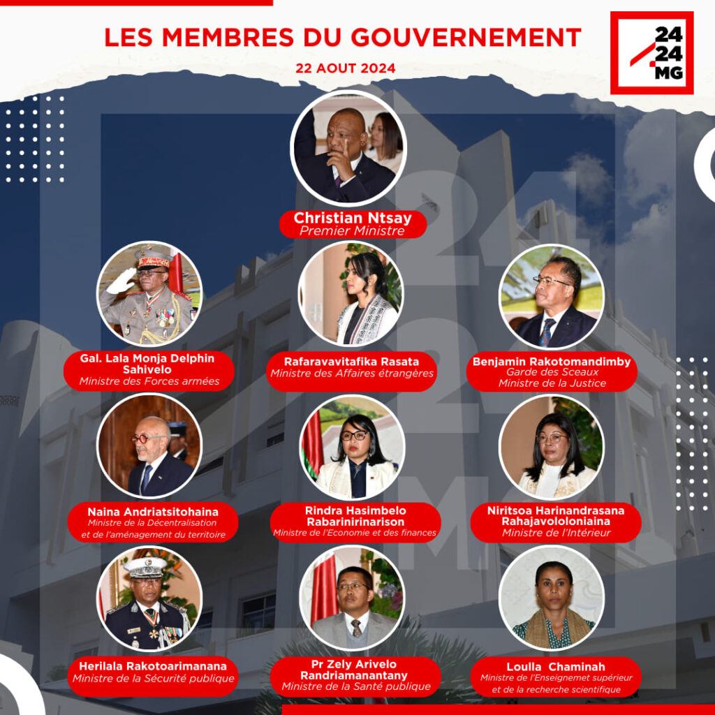 Antananarivo, 22 Août, 19h45 – Un mois et dix jours après la reconduction de Christian Ntsay, les autres membres du gouvernement sont nommés. Dans la liste, ils sont 29 : 27 ministres et deux secrétaires d’Etat. Sur les 29, 12 sont des femmes.