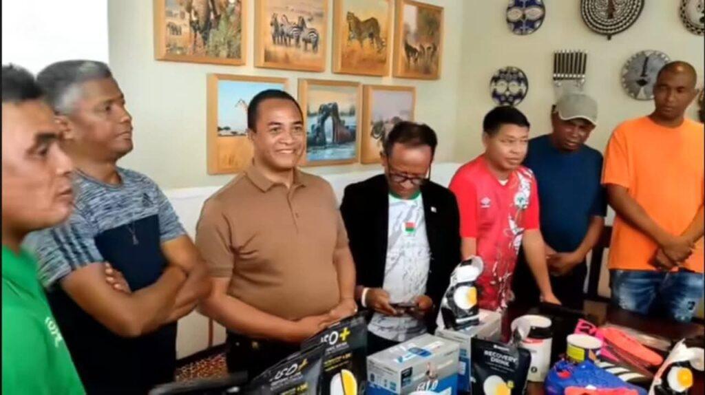 Le matériel et “les primes de qualification qui n’ont rien à voir avec le prize money” ont été offerts au cours d’une cérémonie diffusée en direct sur la page Facebook de Faneva “Ima” Andriatsima. Y ont notamment assisté le président de la Fédération malgache de football, Alfred Randriamanampisoa, le président de l’association des Clubs du football élite de Madagascar (CFEM), Henintsoa “Tôta” Rakotoarimanana, ainsi que les joueurs et le staff technique.