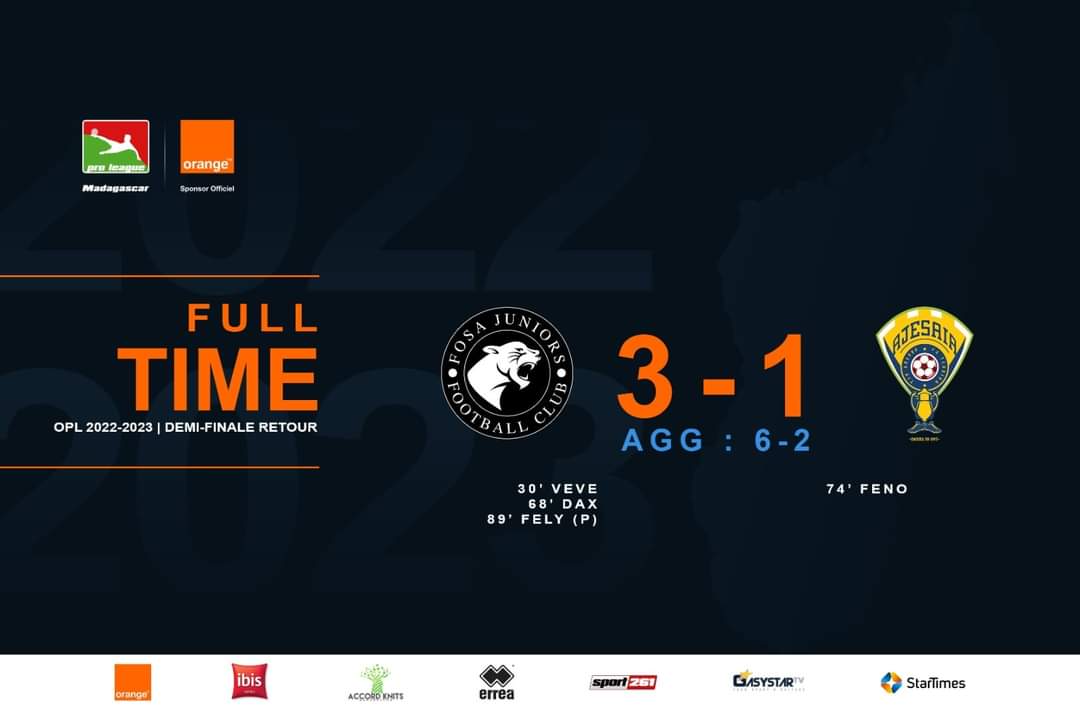Antananarivo, 26 Juin, 11h07 – Une qualification acquise. Fosa Juniors obtient son ticket pour la finale de la Pro League en dominant l’Ajesaia 3 à 1 au match retour des demi-finales, ce dimanche à Mahajanga. C’est sur ce même score que la formation majungaise a remporté le match aller, il y a deux semaines.