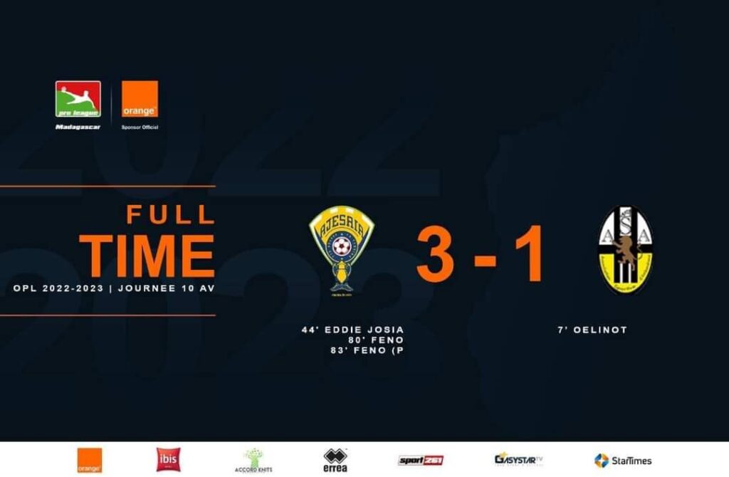 Antananarivo, 23 Février, 7h55 – L’Ajesaia retrouve la victoire. La formation d’Antanikatsaka a battu 3 à 1 l’ASA Diana, mercredi, lors d’un match avancé de la 10ème journée du championnat de Madagascar de football, Pro League, dans la Conférence Nord.