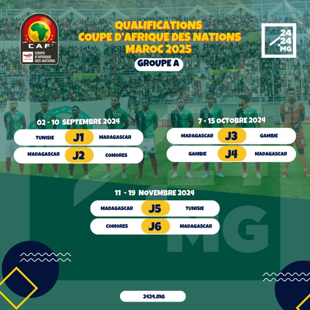 En cas des bons résultats en septembre, Madagascar pourra jouer sa qualification dès le mois d’octobre. Une double confrontation face à la Gambie, la sélection la moins classée dans ce groupe B, est programmée entre le 7 et 15 octobre, dans le cadre de la troisième et la quatrième journée de cette phase éliminatoire. Le match aller se jouera à Madagascar et le retour en Gambie.