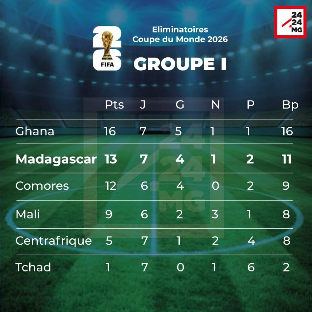 La première place, elle, n’est pas inatteignable pour Madagascar mais dépendra des résultats du Ghana. Celui-ci affrontera encore les Comores, le Mali et la Centrafrique. Pour la huitième journée, le Ghana sera opposé au Mali tandis que les Comores joueront contre la Centrafrique.
