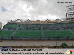 Antananarivo, 22 Mai, 11h15 – Les travaux d’extension du stade des Barea entrent dans leurs dernière phase, indiquent les responsables du projet. Avec le report en Septembre des premières journées des éliminatoires de la Coupe du monde, les travaux ont repris et avancent à grands pas. Les ouvriers s’attaquent désormais à l’installation des sièges sur les gradins, ceux des tribunes ayant été finalisés depuis quelques semaines maintenant. Trois des quatre grands projecteurs qui vont illuminer le stade sont déjà mis en place, ainsi que le premier des deux écrans géants prévus.