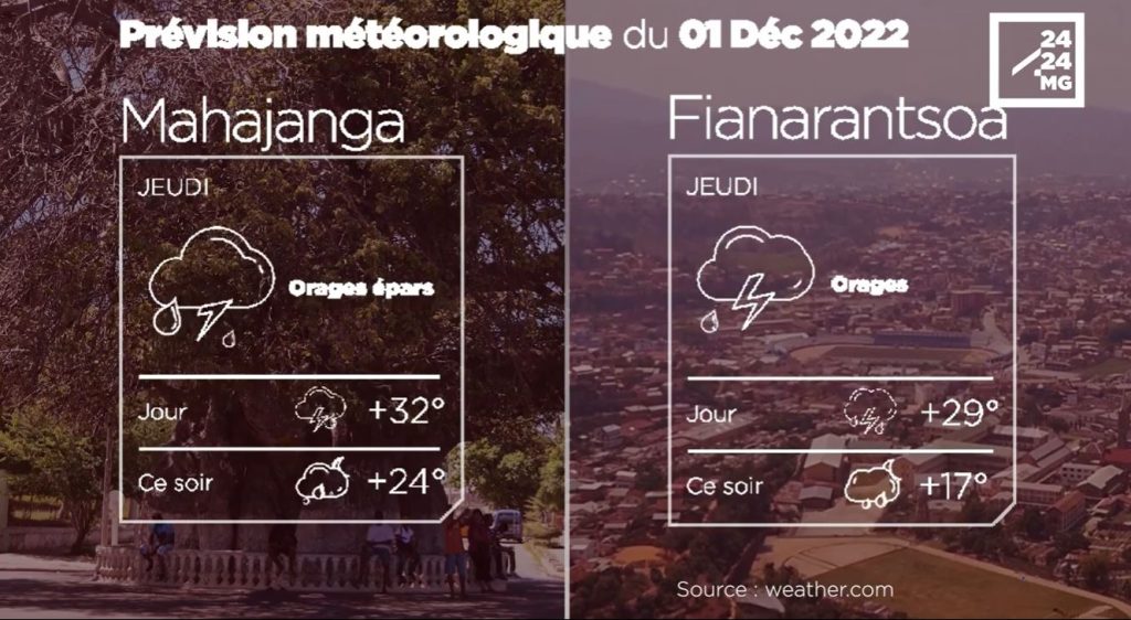 Les prévisions météorologiques des grandes villes de Madagascar pour la journée du 01 décembre.