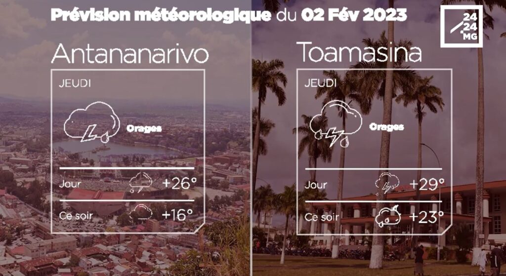 Les prévisions météorologiques des grandes villes de Madagascar pour la journée du 02 février.