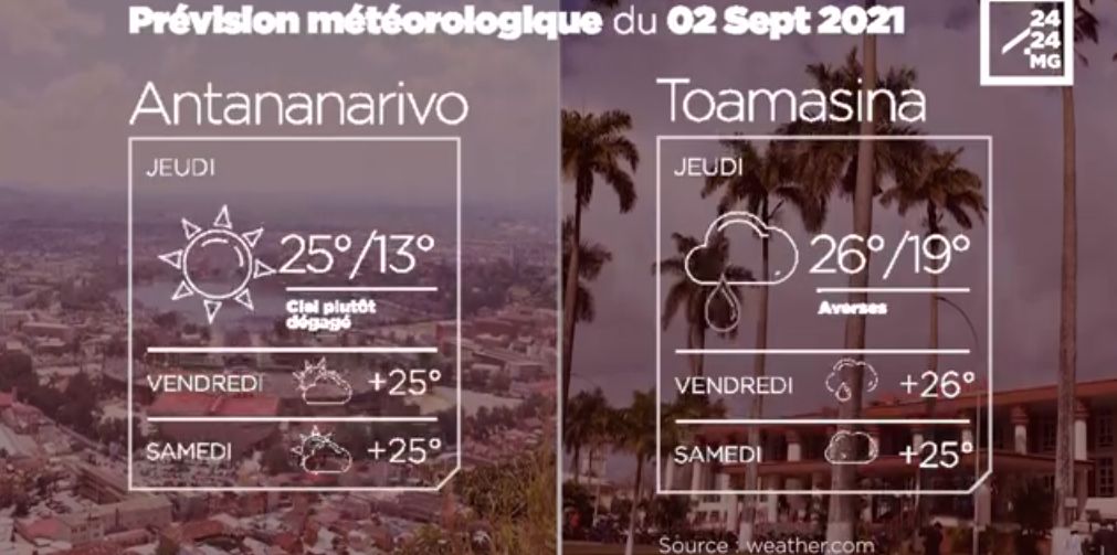 Les prévisions météorologiques des grandes villes de Madagascar pour la journée du 02 septembre.