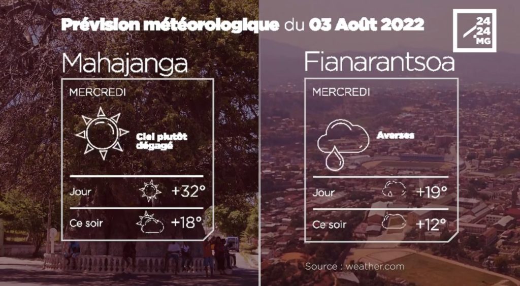 Les prévisions météorologiques des grandes villes de Madagascar pour la journée du 03 août.
