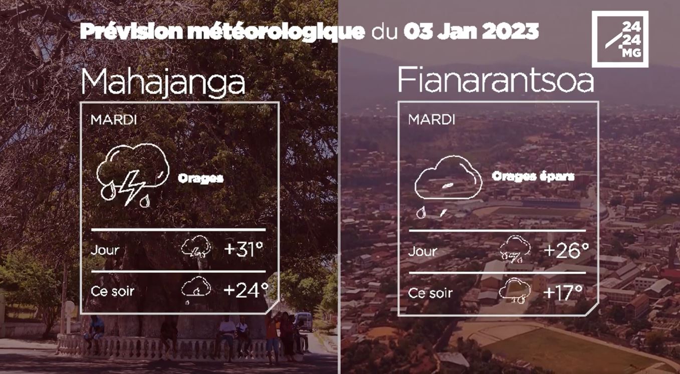 Les prévisions météorologiques des grandes villes de Madagascar pour la journée du 03 janvier.