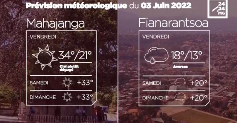 Les prévisions météorologiques des grandes villes de Madagascar pour la journée du 03 juin.