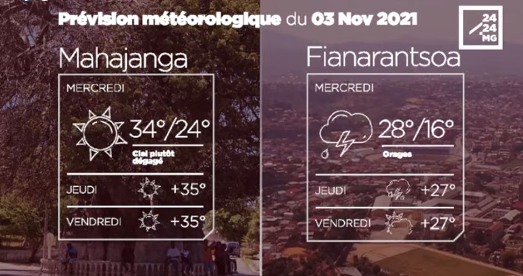 Les prévisions météorologiques des grandes villes de Madagascar pour la journée du 03 novembre.