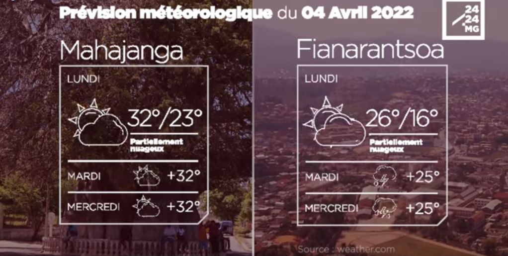 Les prévisions météorologiques des grandes villes de Madagascar pour la journée du 04 avril.