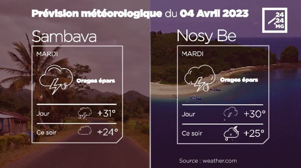 Les prévisions météorologiques des grandes villes de Madagascar pour la journée du 04 avril.