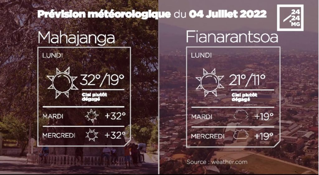 Les prévisions météorologiques des grandes villes de Madagascar pour la journée du 04 juillet.