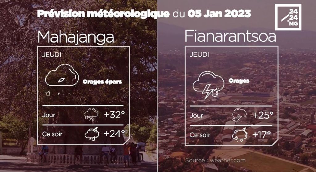 Les prévisions météorologiques des grandes villes de Madagascar pour la journée du 05 janvier.