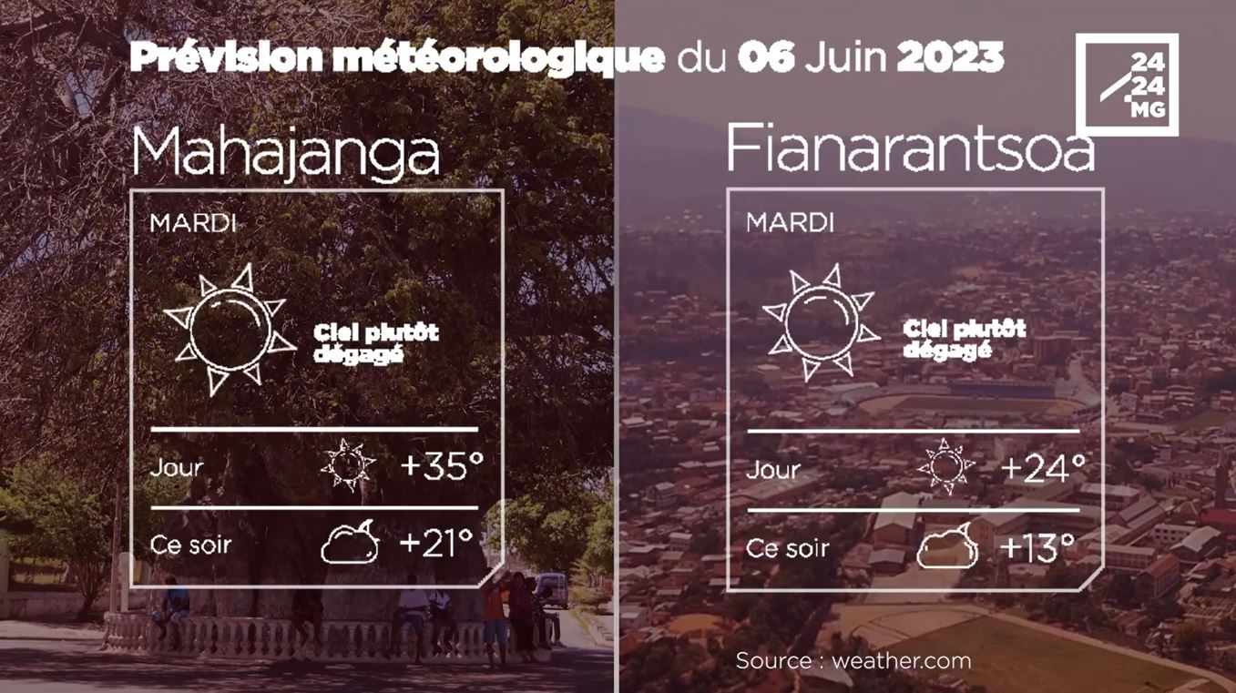 Les prévisions météorologiques des grandes villes de Madagascar pour la journée du 06 juin.