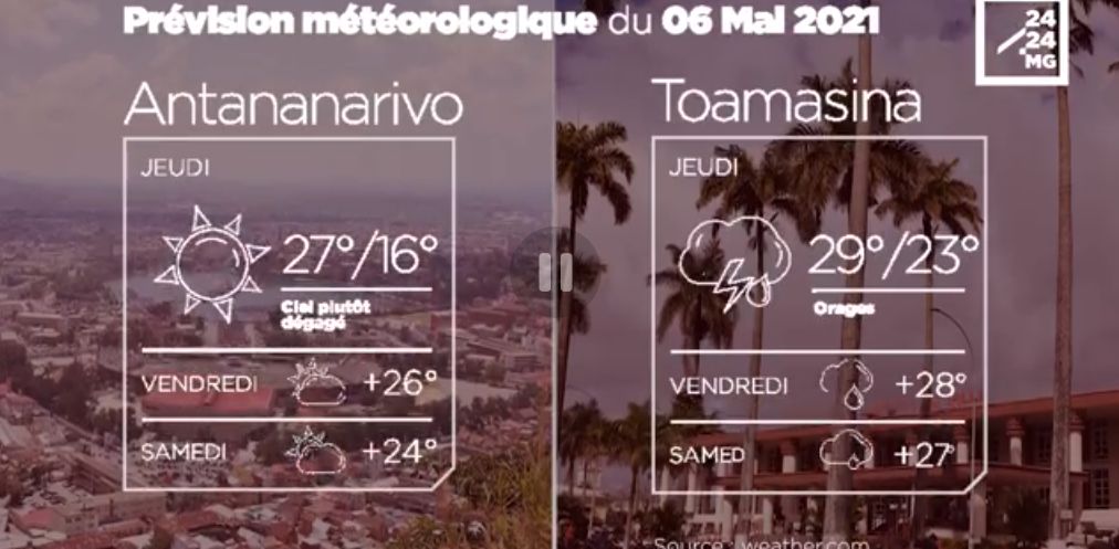 Les prévisions météorologiques des grandes villes de Madagascar pour la journée du 06 mai.