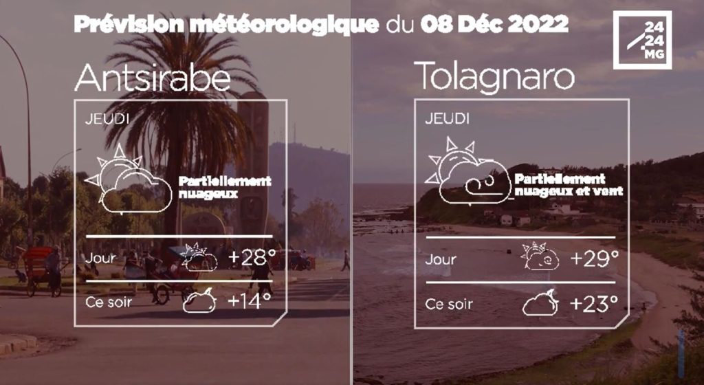 Les prévisions météorologiques des grandes villes de Madagascar pour la journée du 08 décembre.