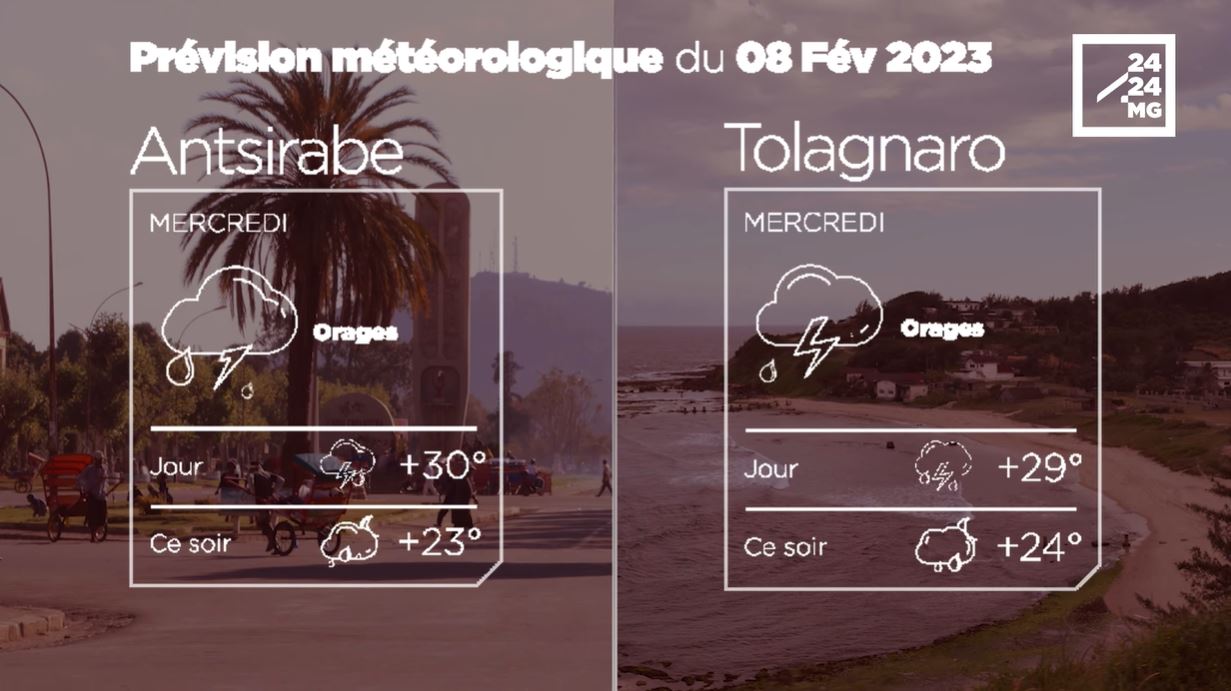 Les prévisions météorologiques des grandes villes de Madagascar pour la journée du 08 février.