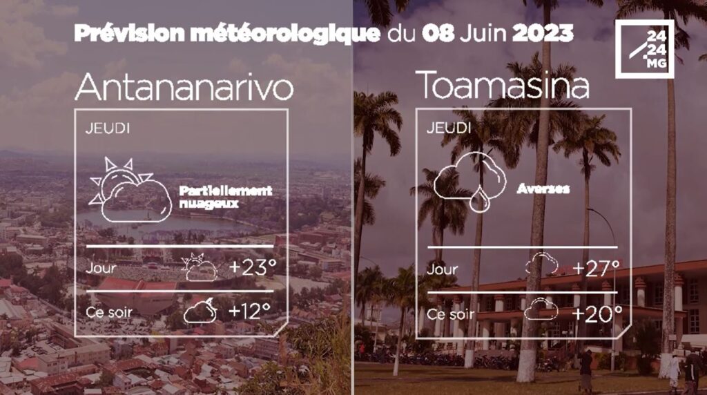 Les prévisions météorologiques des grandes villes de Madagascar pour la journée du 08 juin.