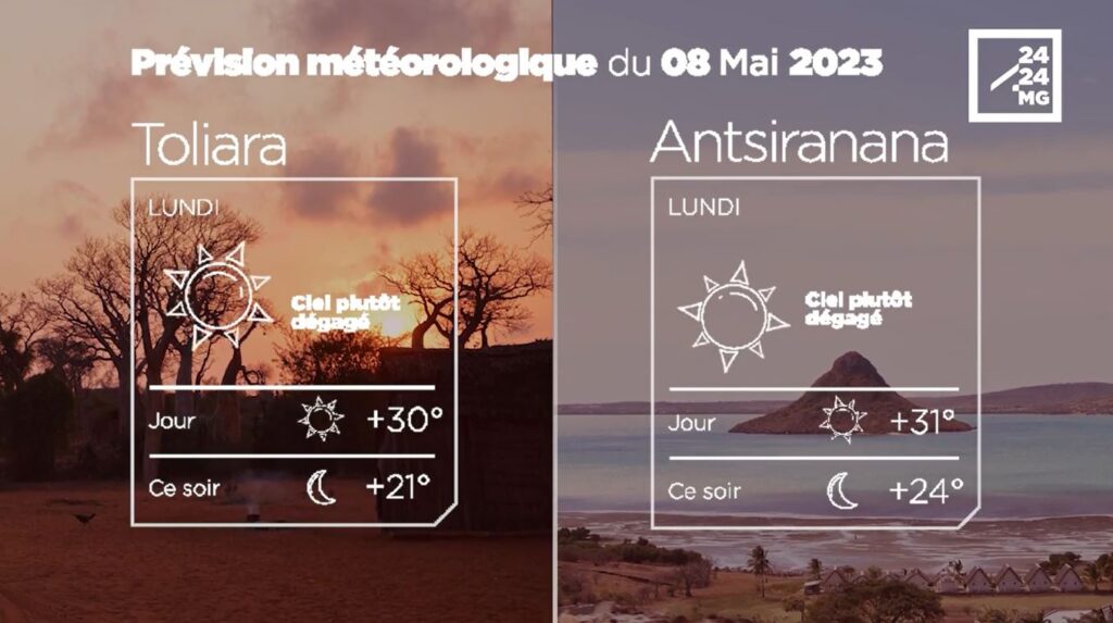Les prévisions météorologiques des grandes villes de Madagascar pour la journée du 08 Mai.