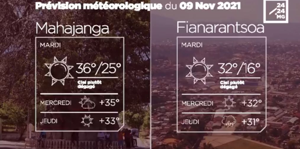 Les prévisions météorologiques des grandes villes de Madagascar pour la journée du 09 novembre.
