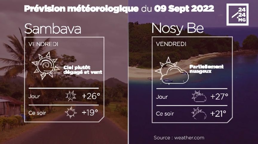 Les prévisions météorologiques des grandes villes de Madagascar pour la journée du 09 septembre.