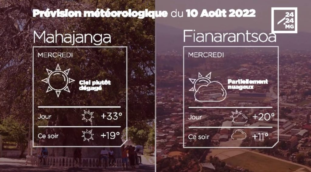 Les prévisions météorologiques des grandes villes de Madagascar pour la journée du 10 août.