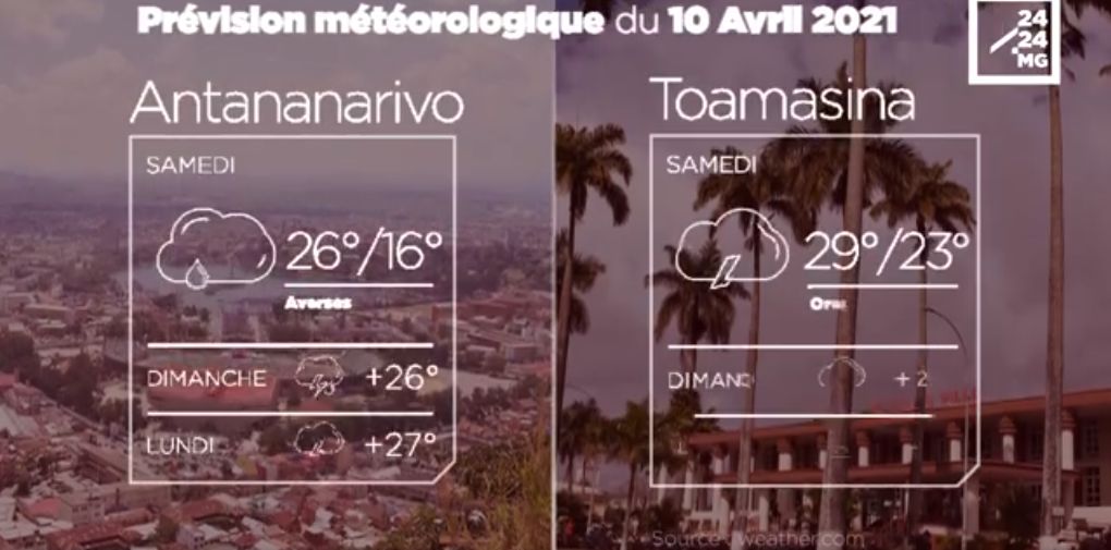 Les prévisions météorologiques des grandes villes de Madagascar pour la journée du 10 avril.