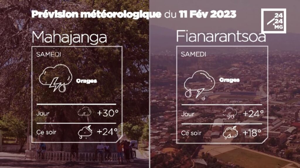 Les prévisions météorologiques des grandes villes de Madagascar pour la journée du 11 février.