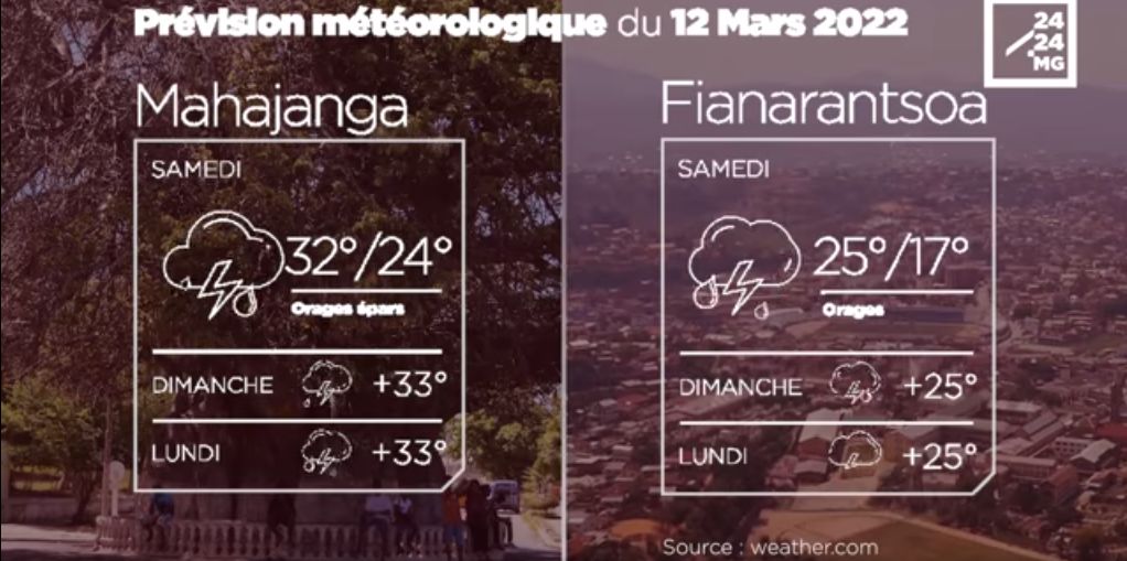 Les prévisions météorologiques des grandes villes de Madagascar pour la journée du 12 mars.