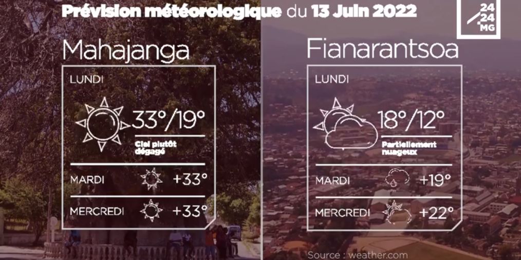 Les prévisions météorologiques des grandes villes de Madagascar pour la journée du 13 juin.