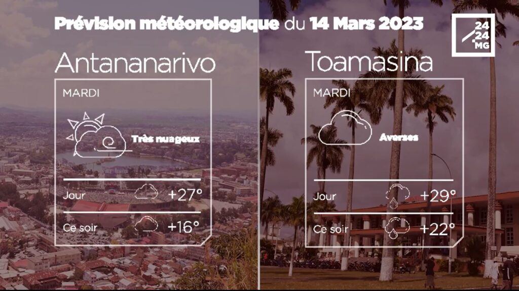Les prévisions météorologiques des grandes villes de Madagascar pour la journée du 14 mars.