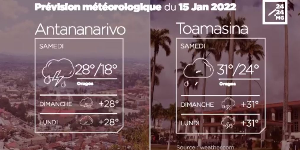 Les prévisions météorologiques des grandes villes de Madagascar pour la journée du 15 janvier.