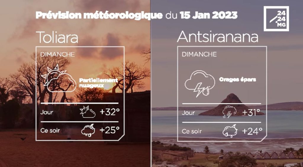 Les prévisions météorologiques des grandes villes de Madagascar pour la journée du 15 janvier.