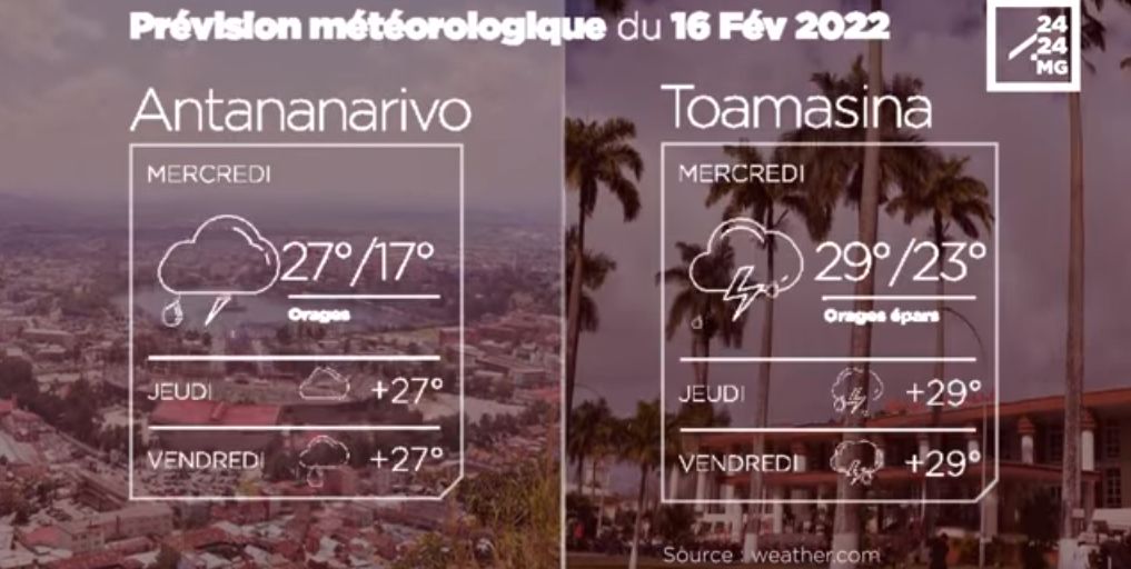 Les prévisions météorologiques des grandes villes de Madagascar pour la journée du 16 février.