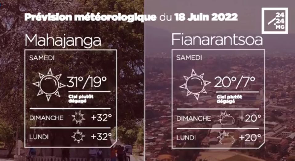 Les prévisions météorologiques des grandes villes de Madagascar pour la journée du 18 juin.
