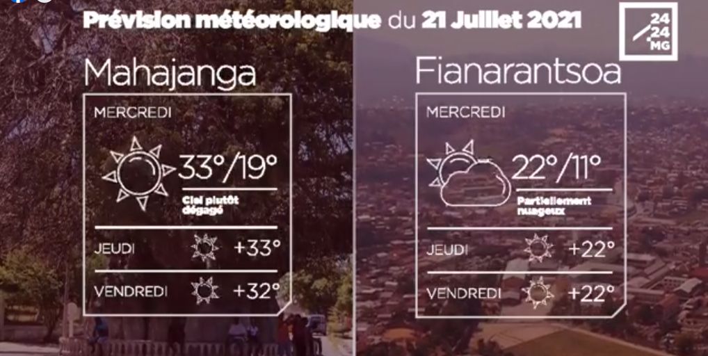 Les prévisions météorologiques des grandes villes de Madagascar pour la journée du 21 juillet.