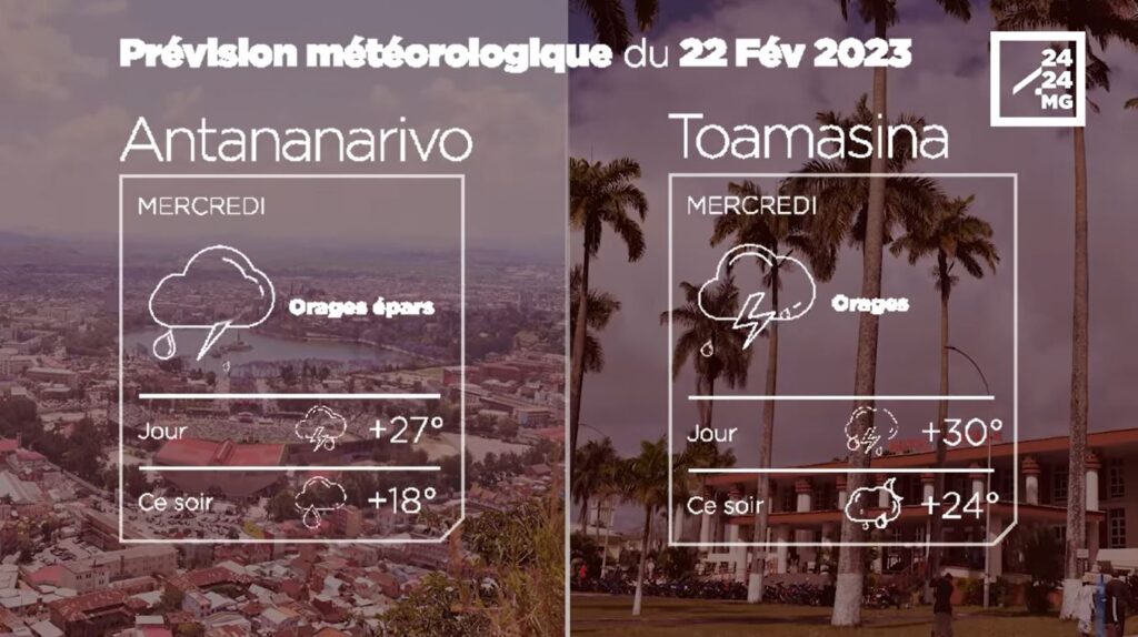 Les prévisions météorologiques des grandes villes de Madagascar pour la journée du 22 février.