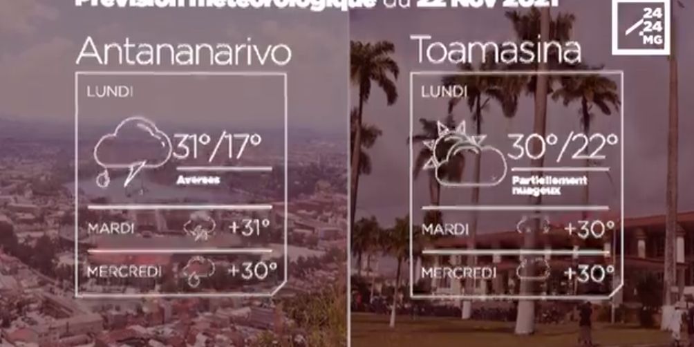 Les prévisions météorologiques des grandes villes de Madagascar pour la journée du 22 novembre.