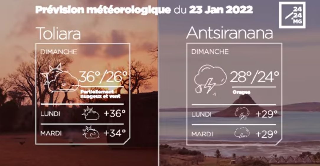 Les prévisions météorologiques des grandes villes de Madagascar pour la journée du 23 janvier.