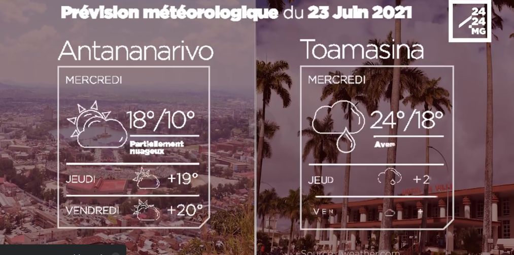 Les prévisions météorologiques des grandes villes de Madagascar pour la journée du 23 juin.